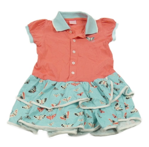 Růžovo-pomněnkové bavlněné šaty s límečkem a motýly