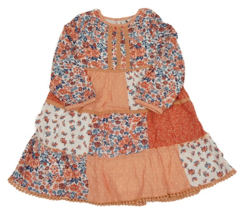 Lososovo-modro-bílé květované patchworkové šaty Topomini