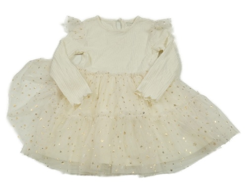 Smetanové žebrované úpletové šaty s tylovou sukní s hvězdami Primark