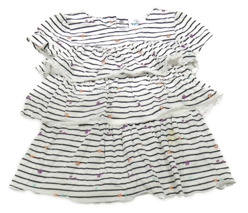Bílo-černé pruhované volánkové šaty s kytičkami Topomini