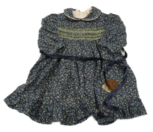 Tmavomodré šaty s kytičkami a větvičkami a ježečkem a límečkem