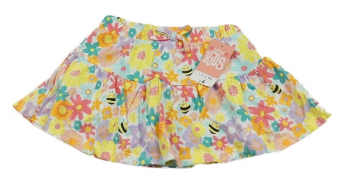 • Nové - Bílo-barevná květovaná bavlněná sukně s včelami a všitými elastickými kraťasy Matalan