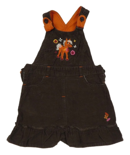 Hnědé manšestrové laclové šaty s koněm Topolino