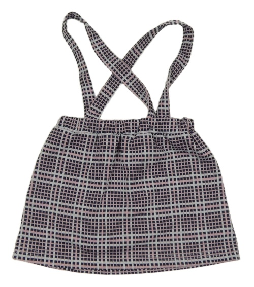 Tmavomodro-šdo-růžová kostkovaná sukně s kšandami