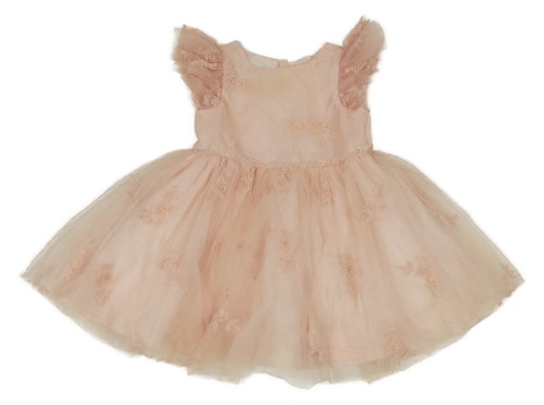 Broskvové síťované šaty s kytičkami