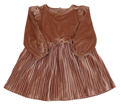 Starorůžové sametové šaty s plisovanou sukní a mašlí Dunnes