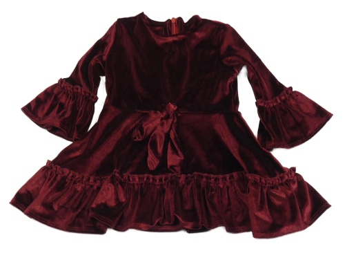 Vínové sametové šaty s mašlí