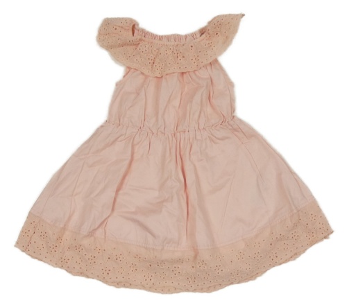 Světlebroskvové plátěné šaty s madeirou a volánkem lupúilu