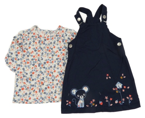 2set - Tmavomodré plátěné laclové šaty s myškou + bílé květované triko