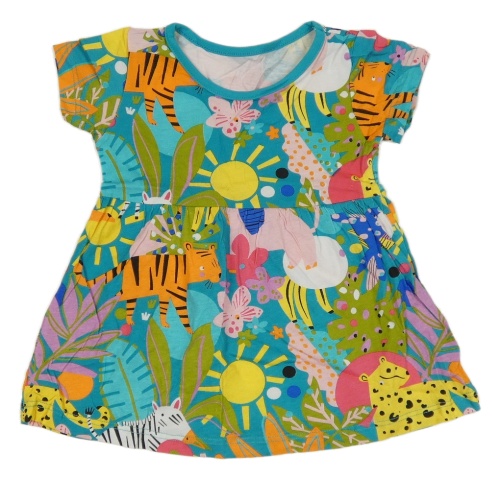 Tyrkysovo-barevná bavlněná šatová tunika se zvířátky a rostlinami