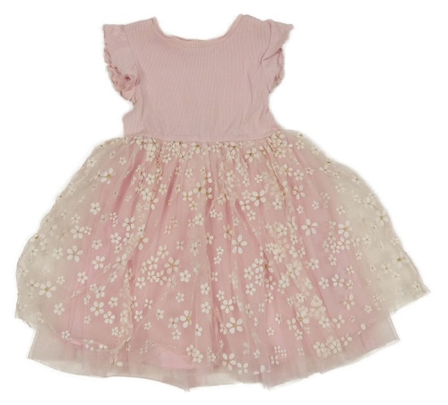 Světlerůžové žebrované šaty s tylem s květy a volánky F&F