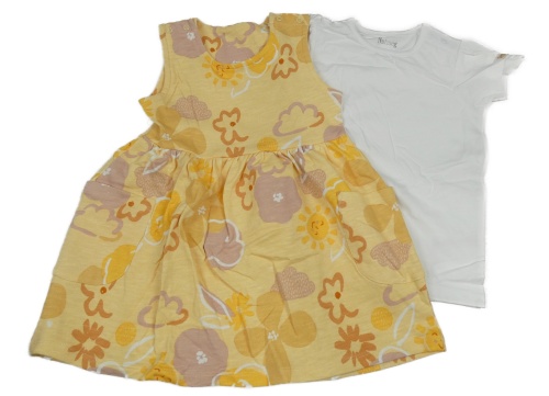Nové - 2set - Žluté teplákové šaty s květy + bílé tričko Nutmeg