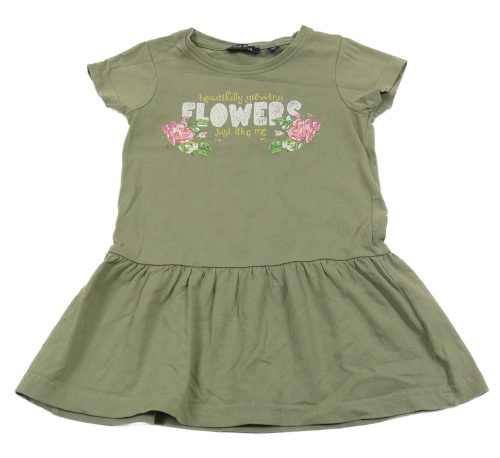 Khaki bavlněné šaty s růžemi a nápisem Blue Seven