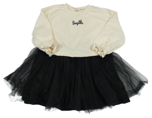 Smetanové šaty s černou tylovou sukní a třešněmi LCW