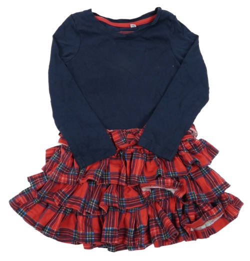 Tmavomodro-červené bavlněné šaty s kostkovanou vrstvenou sukní Bluezoo