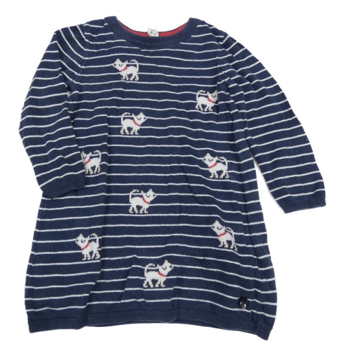 Tmavomodro-bílé pruhované svetrové šaty s pejsky JASPER CONRAN
