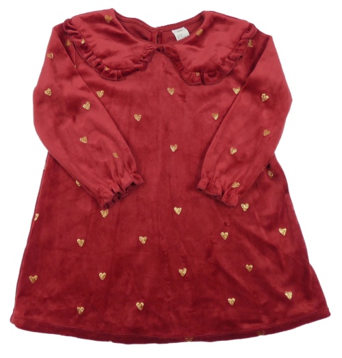 Tmavočervené plyšové šaty se srdíčky a límečkem H&M