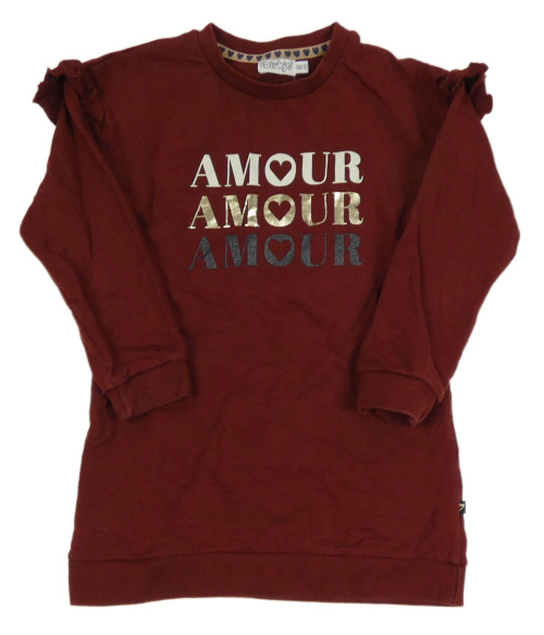 Vínové teplákové šaty s nápisy a volánky Dirkje