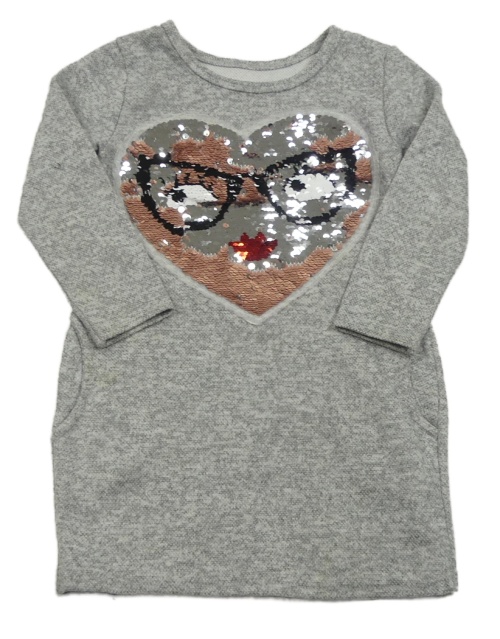 Šedé melírované úpletové šaty se srdcem z flitrů