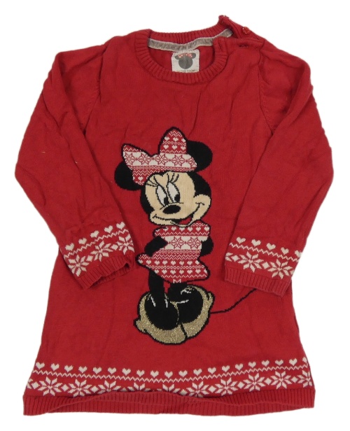 Červené svetrové vzorované šaty s Minnie Disney