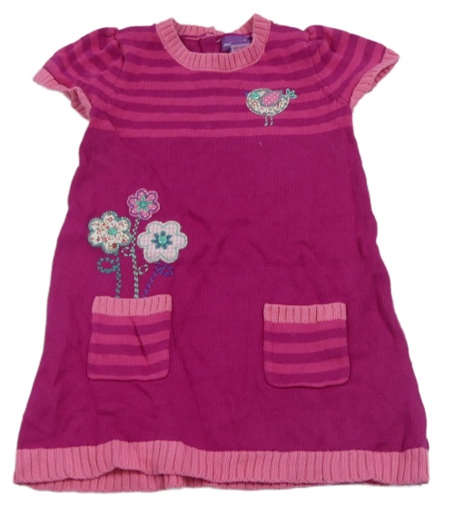 Růžové svetrové šaty s pruhy a kapsami a květinami