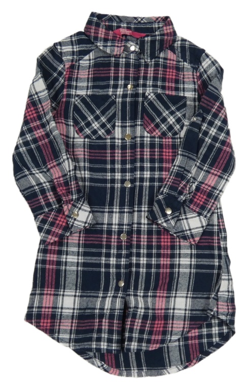 Tmavomodro-bílo-růžové kostkové košilové propínací šaty Yd.