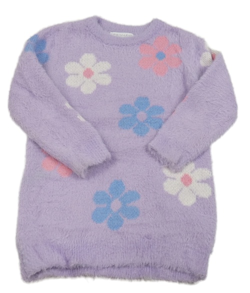 Levandulové chlupaté svetrové šaty s kytičkami Primark