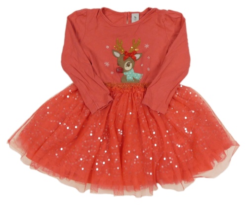 Jahodové šaty se sobem a sukní z flitrů Tu