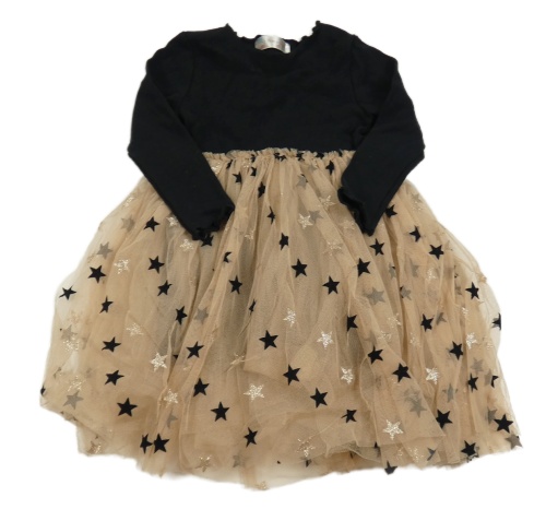Černo-hnědé šaty s tylovou třpytivou sukní s hvězdami