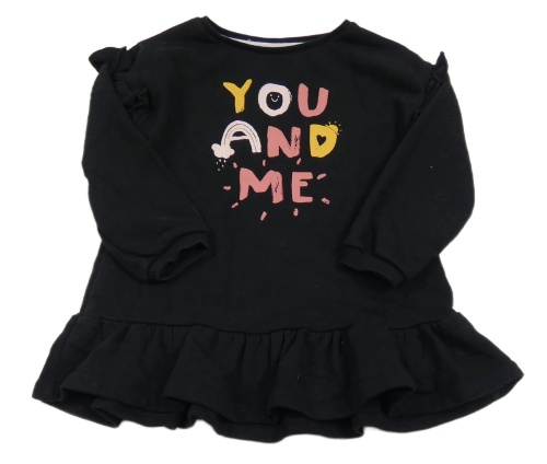 Černá tepláková šatová tunika s nápisem a volánky F&F