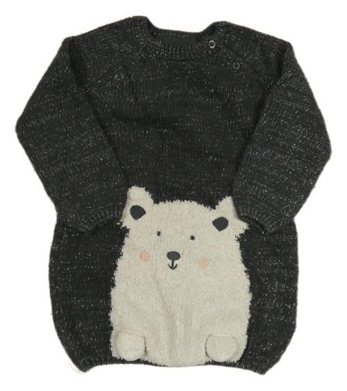 Tmavošedé melírované svetrové šaty s medvídkem PRIMARK
