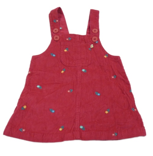 Tmavorůžové manšestrové laclové šaty s kytičkami Frugi