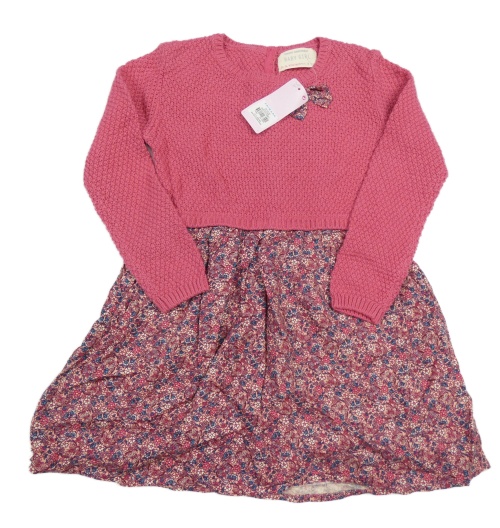 Nové - Růžové pletené/lehké šaty s kytičkami a mašlí Yd.
