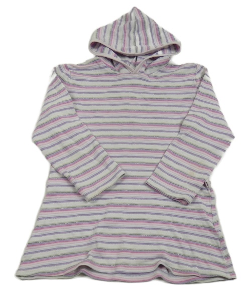 Bílo-růžovo-lila pruhované třpytivé šaty s kapucí