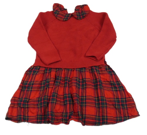 Červené pletené šaty s kostkovanou sukní Next
