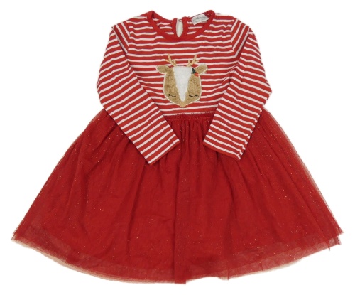 Červeno-bílé pruhované bavlněné šaty se sobem a tylovou sukní