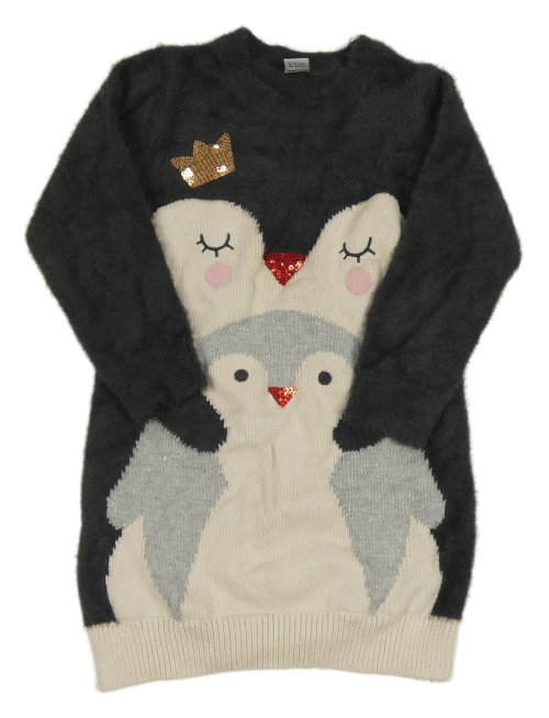 Antracitovo-béžové svetrové šaty s tučňáky Tu