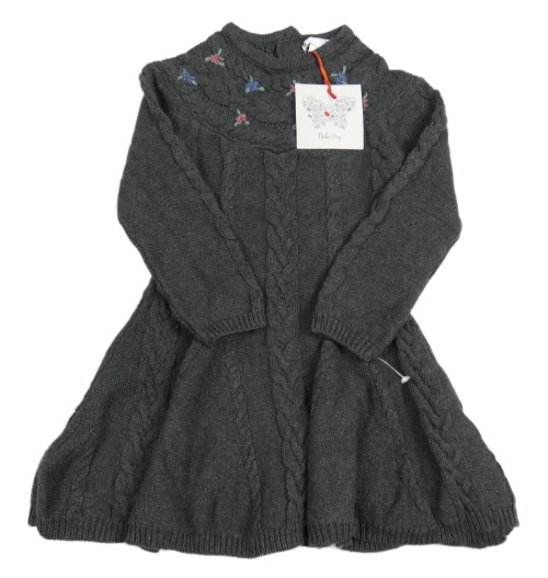 Nové - tmavošedé svetrové šaty s výšivkami květů Nula Bug