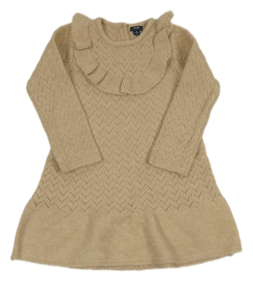 Béžové perforované svetrové šaty s volánem Kiabi