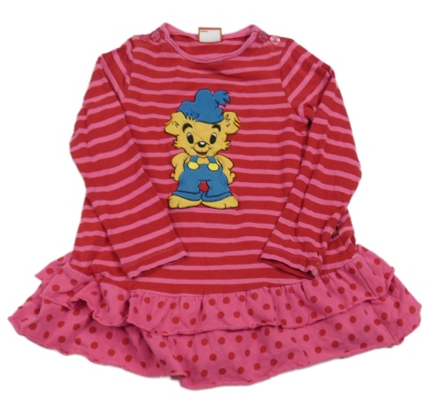 Červeno-růžové pruhované bavlněné šaty s medvídkem