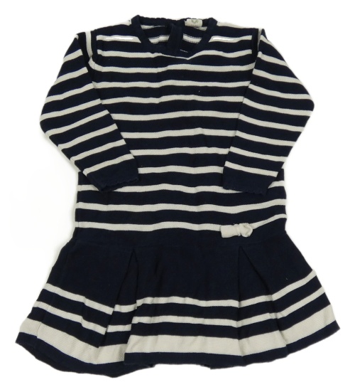 Tmavomodro-bílé pruhované svetrové šaty s mašlí Alana