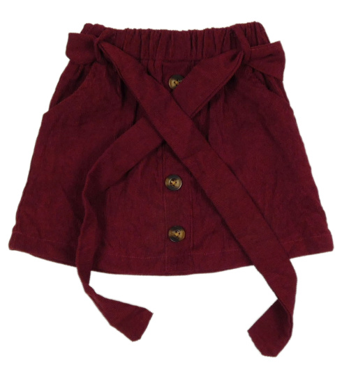 Vínová žebrovaná sukně s knoflíky a páskem Shein