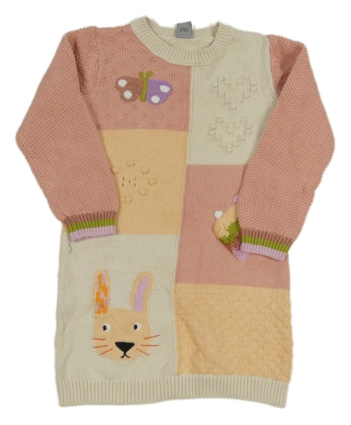 Smetanovo-růžovo-broskvové svetrové šaty se zajíčkem Tu