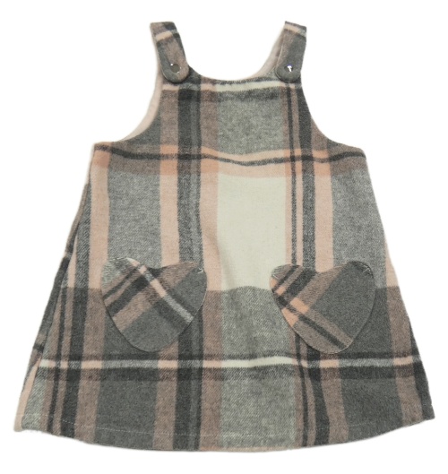 Šedo-starorůžovo-smetanové kostkované vlněné šaty Matalan