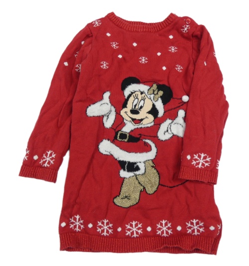 Červené pletené šaty s vločkami a Minnie Disney
