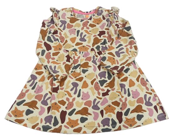 Světlebéžovo-barevné vzorované šaty se zvířátky a volánky HEMA