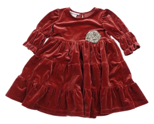 Rezavé sametové šaty s 3D květem Bonnie Jean