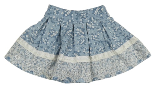 Světlemodrá květovaná kolová sukně s krajkou