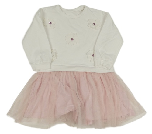 Bílo-růžové teplákové šaty s tylovou sukní a 3D květy Matalan