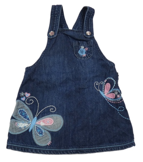 Tmavomodré riflové šaty s motýlky a květy a kapsou F&F